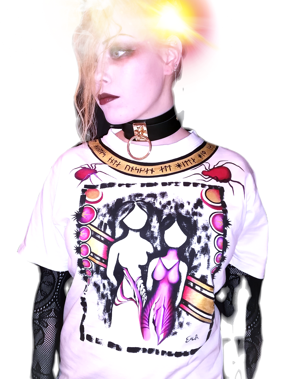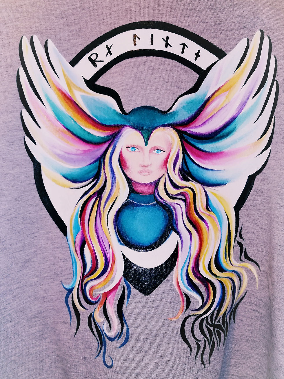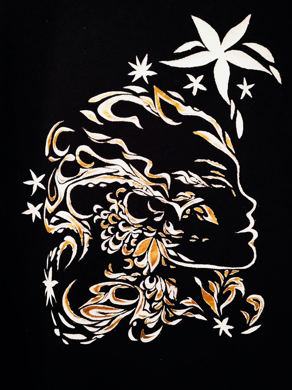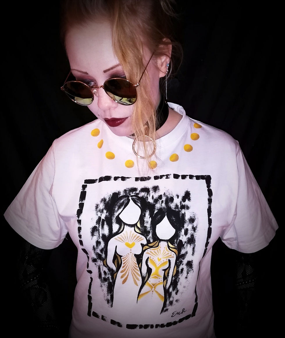 Unique hanpainted wearable artwork. Only one created. Dtails in yellow & gold.